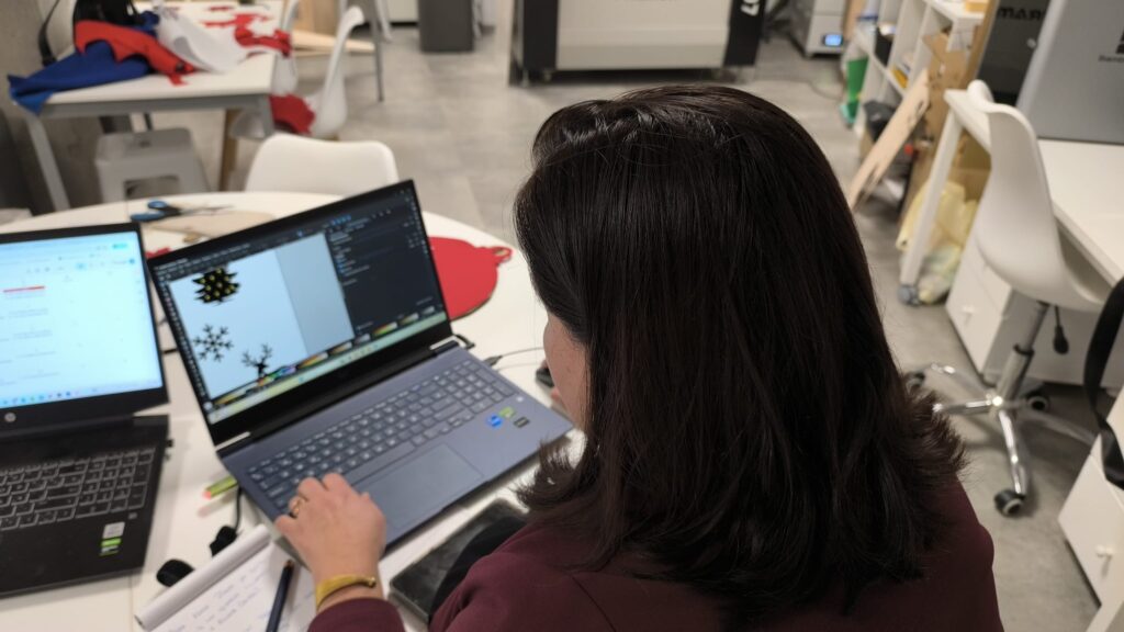 Durante los días previos a la campaña navideña, el Circular FAB acogió un taller de diseño 2D y corte láser dirigido a comerciantes locales y centrado en la creación de elementos decorativos para escaparates con temática navideña. A lo largo de las sesiones, las personas participantes aprendieron a aplicar principios básicos del escaparatismo como la composición, la iluminación o el impacto visual, apoyándose en herramientas digitales y maquinaria de fabricación digital.